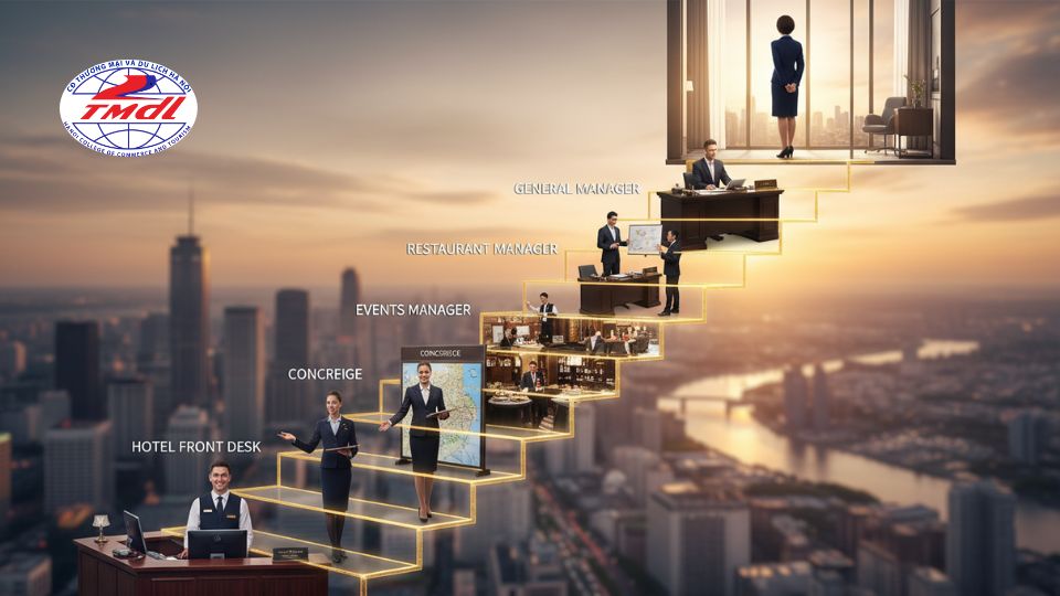 Bạn có thể bắt đầu từ vận hành (lễ tân, buồng phòng, nhà hàng), hoặc chuyển hướng sang sales – chăm sóc khách hàng – sự kiện tùy năng lực. Điều quan trọng là bạn có nền tảng nghề để “đi được nhiều đường”.